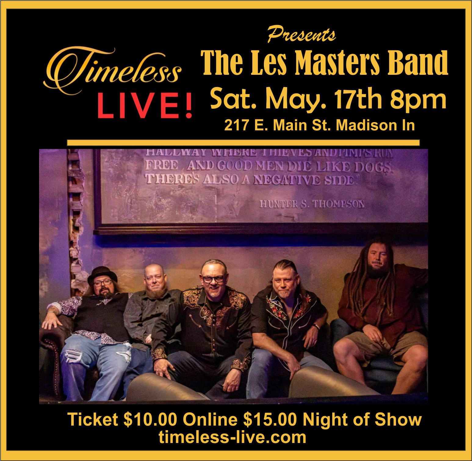 A country singer, a rock band, an energetic and engaging live show, a song list that brings the party, and ladies & gentlemen…The Les Masters band. Vocalist, Les Masters, hails from the same holler that spawned Loretta Lynn, Dwight Yoakum, and Chris Stapleton, and you can hear it in his voice. These guys live to perform and you will feel it on May 17th when they take the Timeless LIVE! stage.